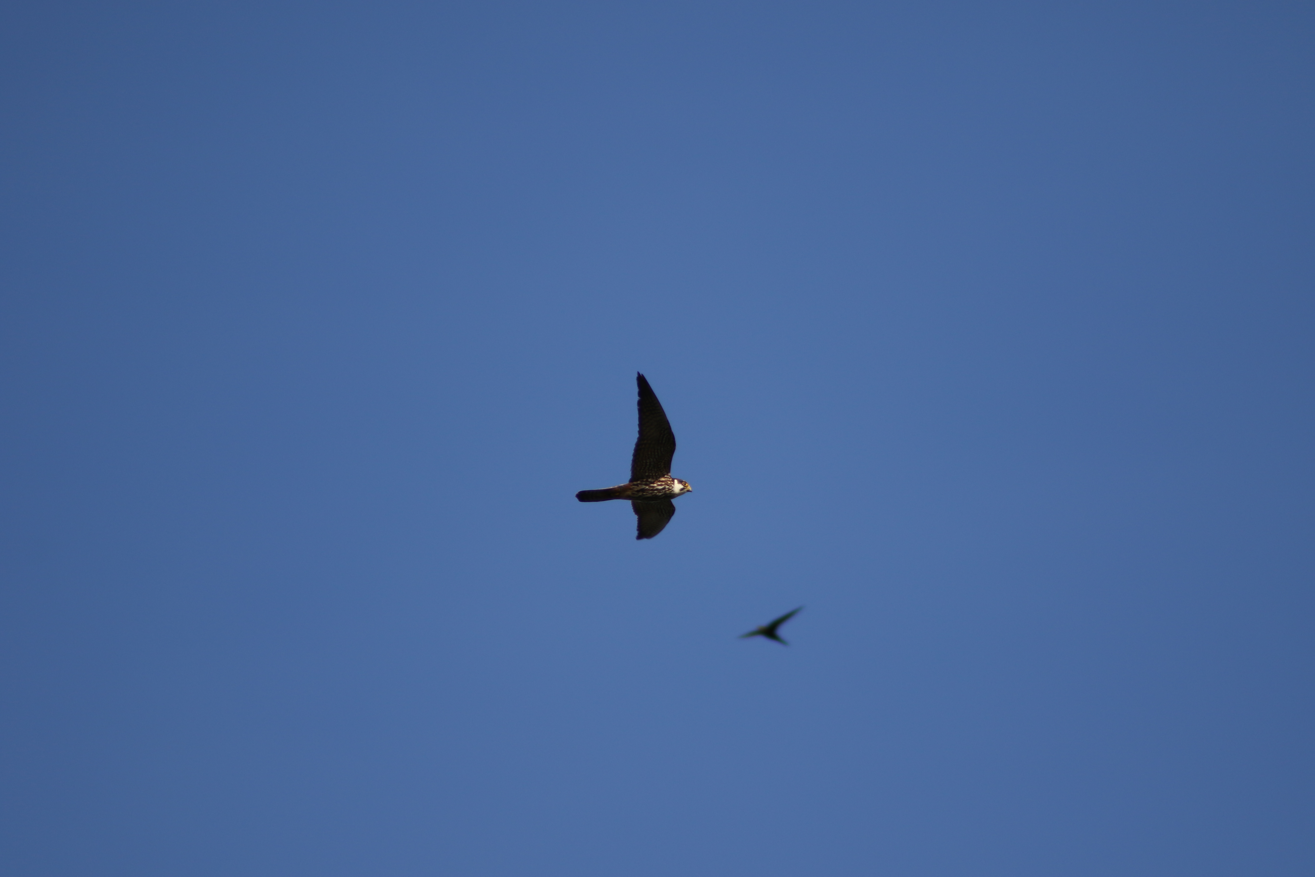 I started to head back towards Mile Road where I would meet Anand. Before he arrived I had a cracking view of a 2cy Hobby cutting through the centre of the ball of Swifts over the lake. Thankfully later on we picked up another Hobby. There was a flock of 54 Stock Doves on the southern area of the mound on the bend heading towards the Phase 3 Wet Grassland and three Rooks flew around too. On Phase 3 there were two Little Ringed Plovers (one presumably the bird that flew over Mile Road earlier). A Red Kite drifted west over by the Incinerator. Anand also spotted a Hummingbird Hawk Moth in the South East Corner (my first in the UK I believe) and then we think we possibly had a second individual. A Painted Lady butterfly was also on the border of the Phase 3 Wet Grassland and we found a Lesser Pearl Moth.